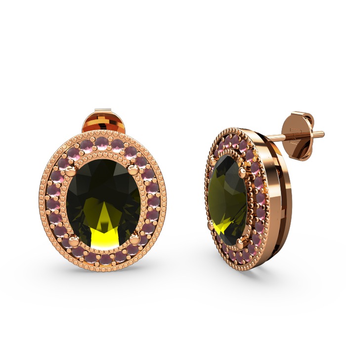 Peridot ve kök yakut 18 ayar rose altın küpe