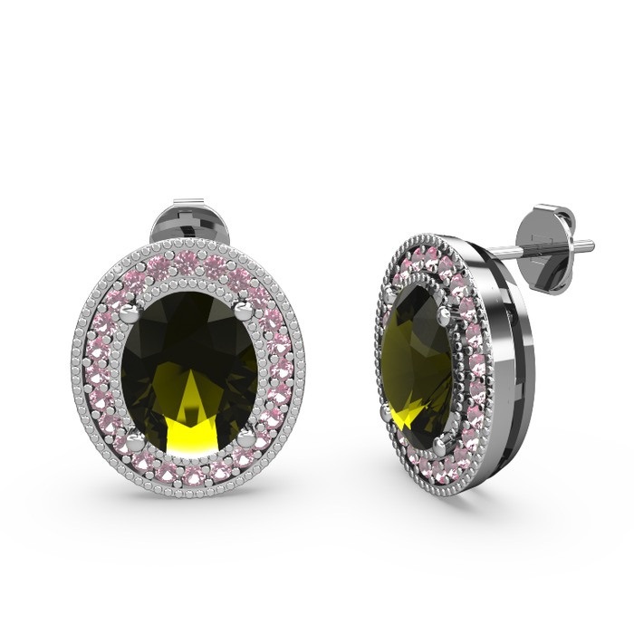 Peridot ve pembe kuvars 18 ayar beyaz altın küpe