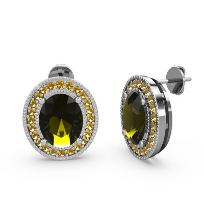 Peridot ve sitrin 18 ayar beyaz altın küpe