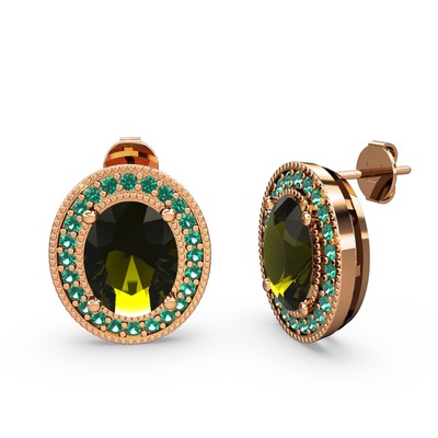 Peridot ve yeşil kuvars 18 ayar rose altın küpe