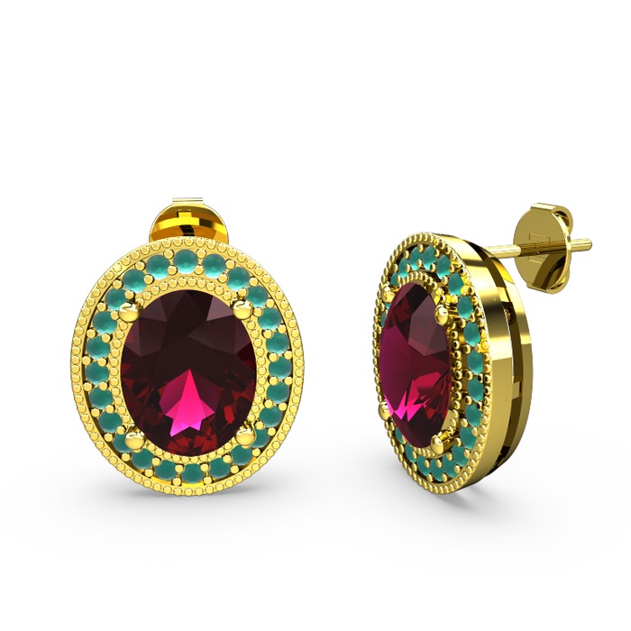 Rodolit garnet ve kök zümrüt 14 ayar altın küpe