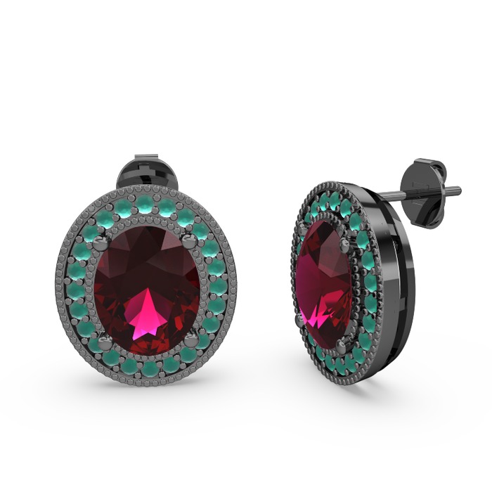 Rodolit garnet ve kök zümrüt 925 ayar siyah rodyum kaplama gümüş küpe