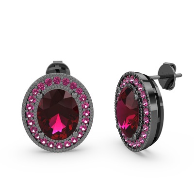 Rodolit garnet 925 ayar siyah rodyum kaplama gümüş küpe