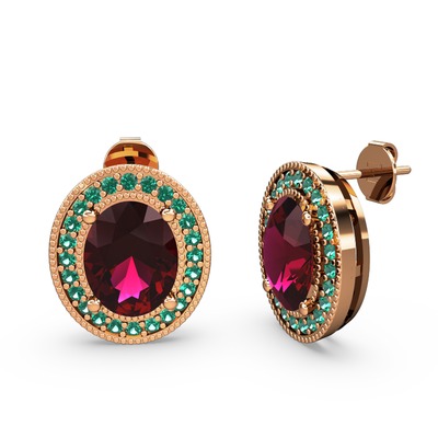 Rodolit garnet ve yeşil kuvars 18 ayar rose altın küpe