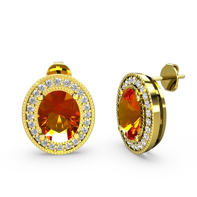 Sitrin ve beyaz zirkon 925 ayar altın kaplama gümüş küpe