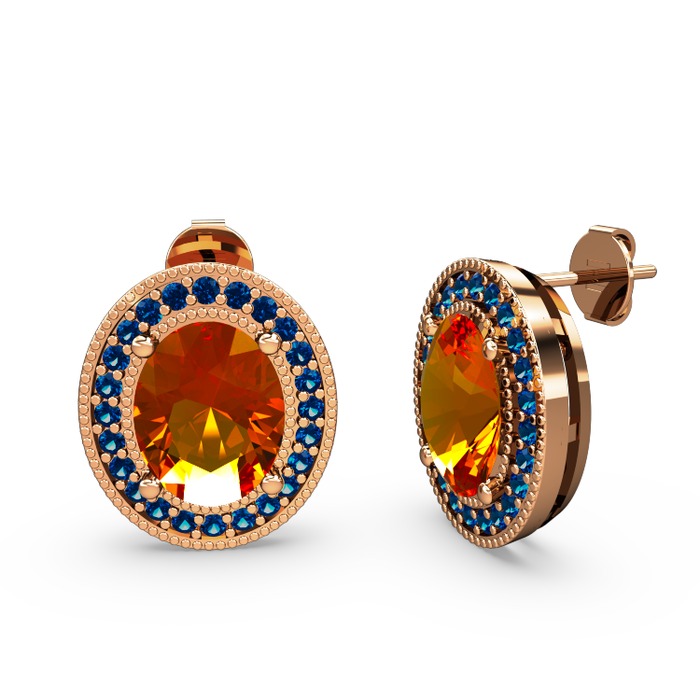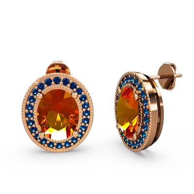 Sitrin ve lab safir 925 ayar rose altın kaplama gümüş küpe