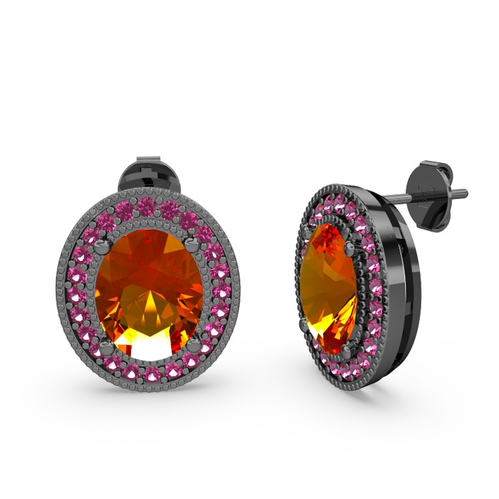 Sitrin ve rodolit garnet 925 ayar siyah rodyum kaplama gümüş küpe