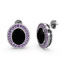 Siyah zirkon ve ametist 8 ayar beyaz altın küpe