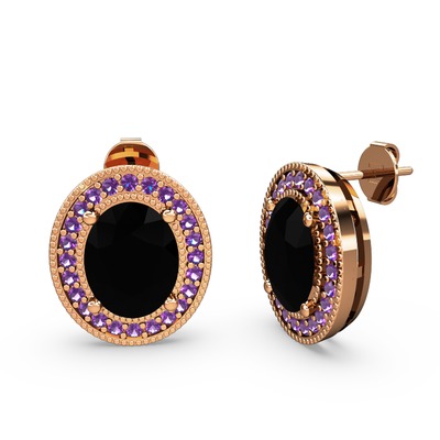 Siyah zirkon ve ametist 925 ayar rose altın kaplama gümüş küpe