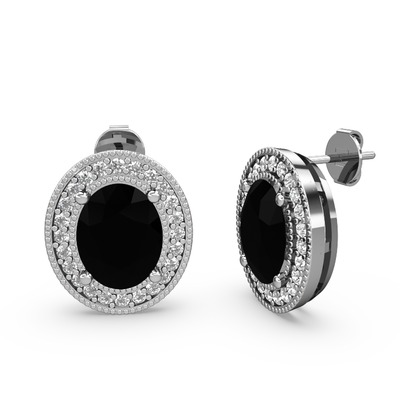 Siyah zirkon ve beyaz zirkon 14 ayar beyaz altın küpe