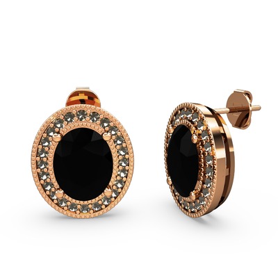 Siyah zirkon ve dumanlı kuvars 14 ayar rose altın küpe