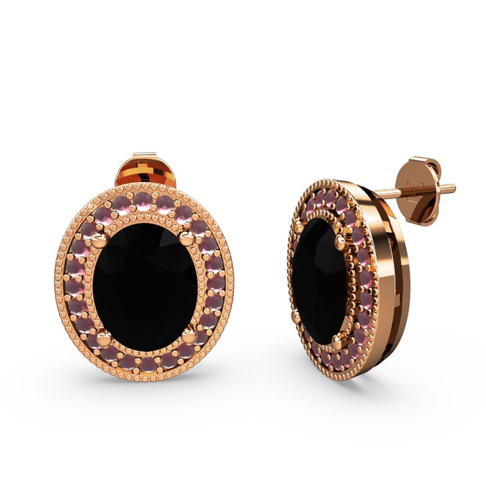 Siyah zirkon ve kök yakut 18 ayar rose altın küpe