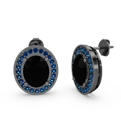 Siyah zirkon ve lab safir 925 ayar siyah rodyum kaplama gümüş küpe