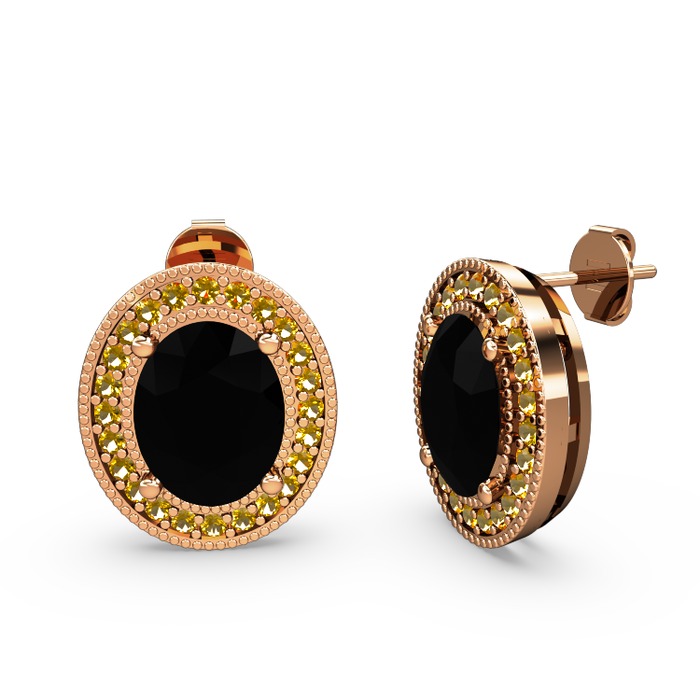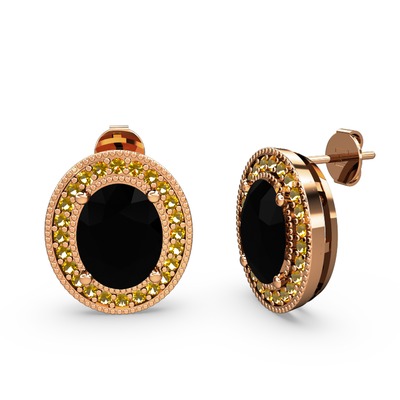 Siyah zirkon ve sitrin 14 ayar rose altın küpe