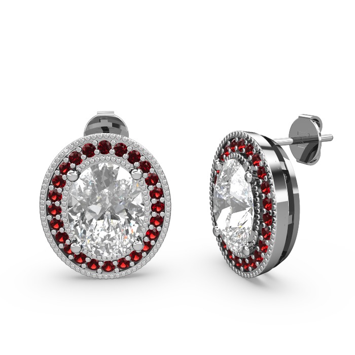 Swarovski ve garnet 8 ayar beyaz altın küpe
