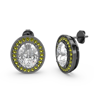Swarovski ve peridot 925 ayar siyah rodyum kaplama gümüş küpe