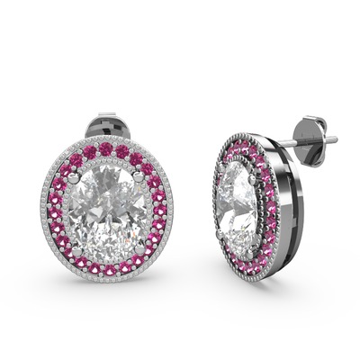 Swarovski ve rodolit garnet 8 ayar beyaz altın küpe