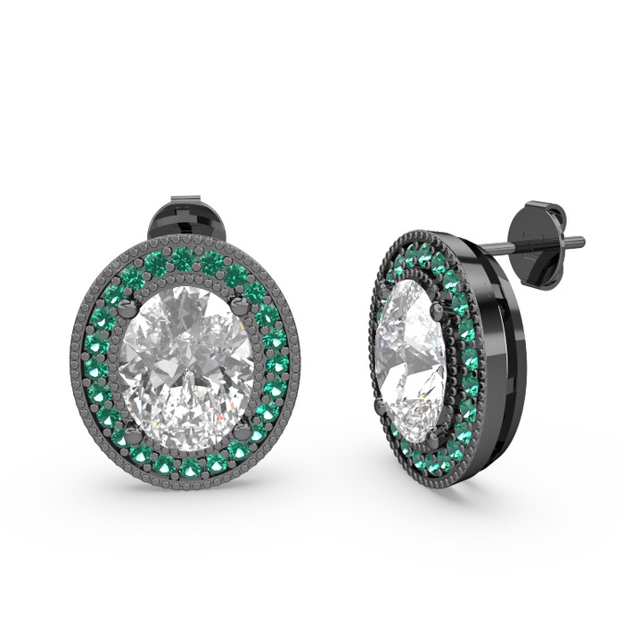 Swarovski ve yeşil kuvars 925 ayar siyah rodyum kaplama gümüş küpe