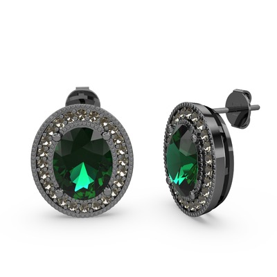 Yeşil kuvars ve dumanlı kuvars 925 ayar siyah rodyum kaplama gümüş küpe