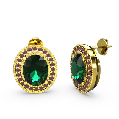 Yeşil kuvars ve kök yakut 14 ayar altın küpe