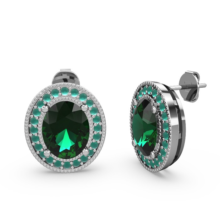 Yeşil kuvars ve kök zümrüt 18 ayar beyaz altın küpe