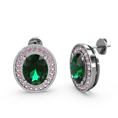 Yeşil kuvars ve pembe kuvars 18 ayar beyaz altın küpe