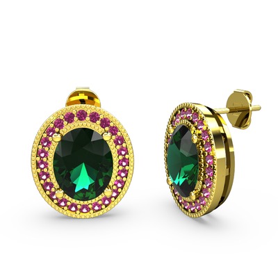 Yeşil kuvars ve rodolit garnet 925 ayar altın kaplama gümüş küpe