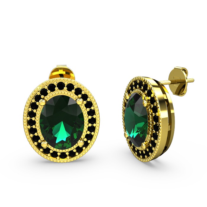 Yeşil kuvars ve siyah zirkon 14 ayar altın küpe