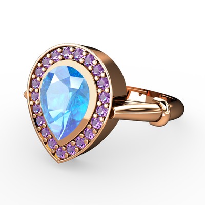 Akuamarin ve ametist 925 ayar rose altın kaplama gümüş yüzük