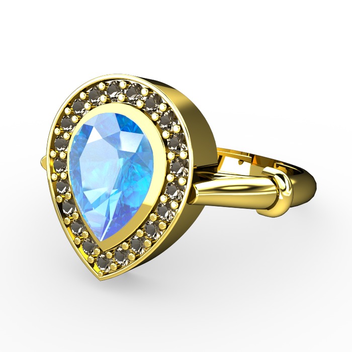 Akuamarin ve dumanlı kuvars 14 ayar altın yüzük