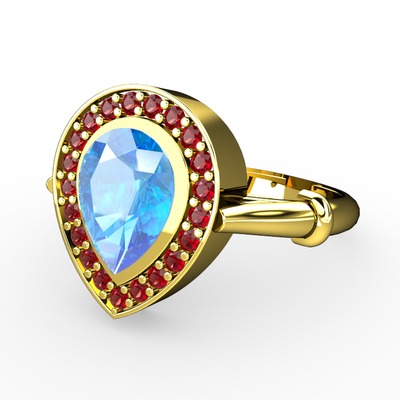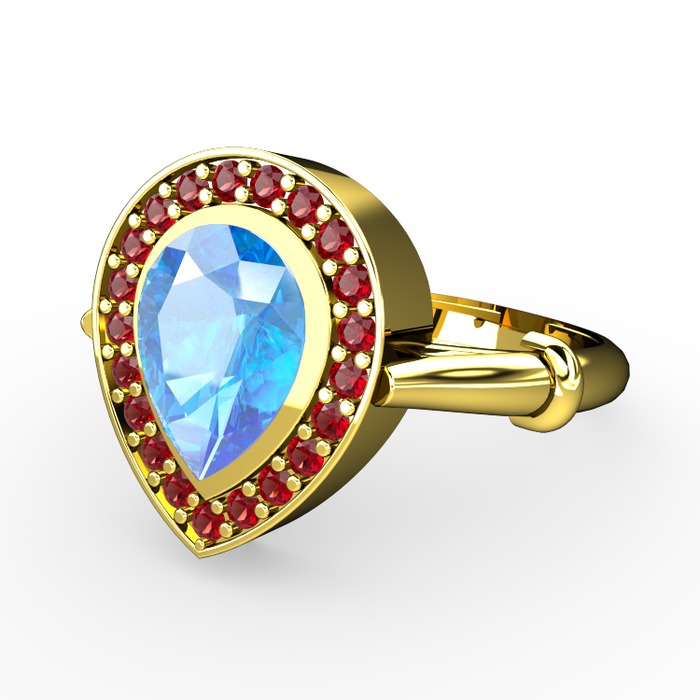 Akuamarin ve garnet 925 ayar altın kaplama gümüş yüzük
