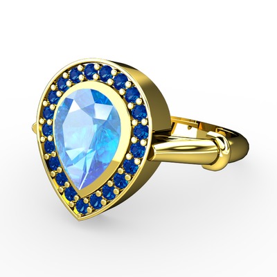 Akuamarin ve lab safir 925 ayar altın kaplama gümüş yüzük