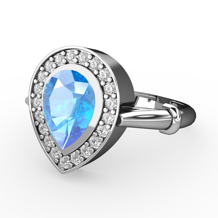 Akuamarin ve pırlanta 8 ayar beyaz altın yüzük (0.22 karat)