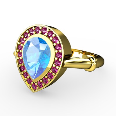 Akuamarin ve rodolit garnet 8 ayar altın yüzük
