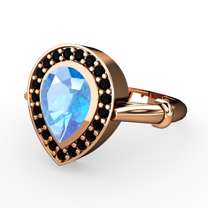 Akuamarin ve siyah zirkon 8 ayar rose altın yüzük