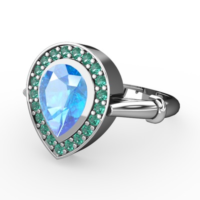 Akuamarin ve yeşil kuvars 8 ayar beyaz altın yüzük