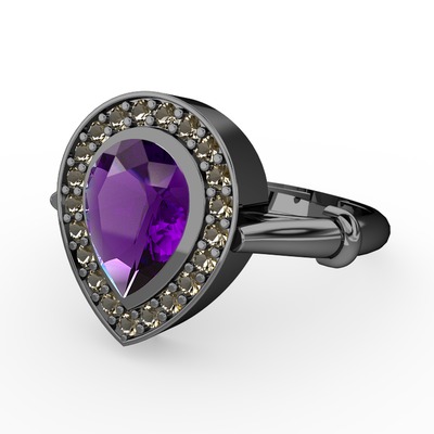 Ametist ve dumanlı kuvars 925 ayar siyah rodyum kaplama gümüş yüzük
