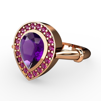 Ametist ve rodolit garnet 18 ayar rose altın yüzük