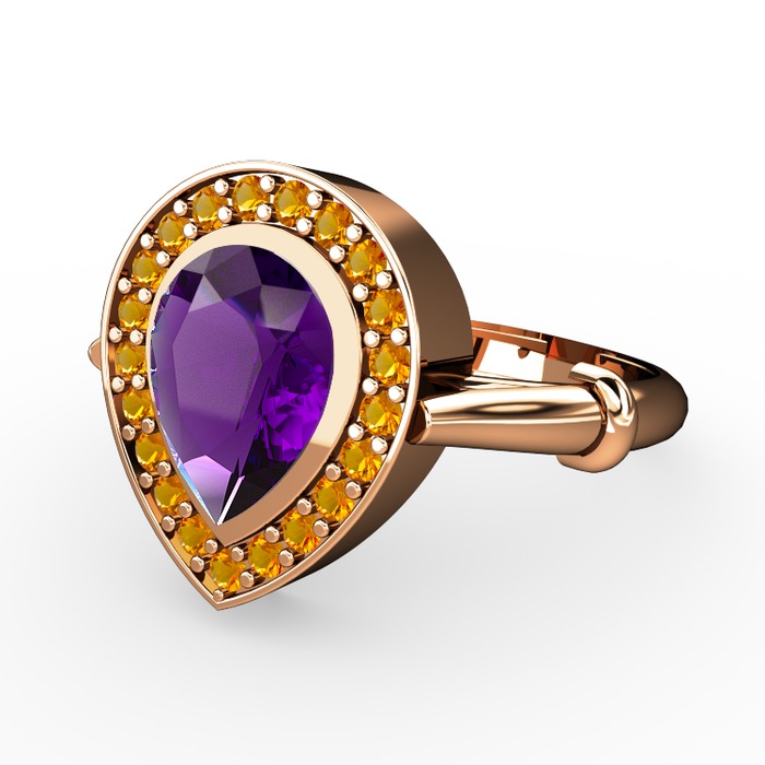 Ametist ve sitrin 925 ayar rose altın kaplama gümüş yüzük