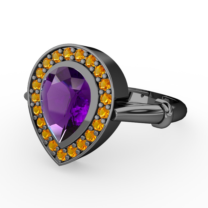 Ametist ve sitrin 925 ayar siyah rodyum kaplama gümüş yüzük