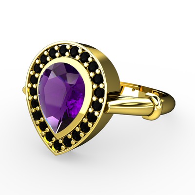 Ametist ve siyah zirkon 14 ayar altın yüzük