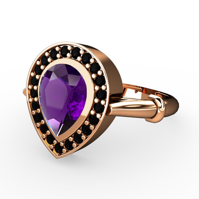 Ametist ve siyah zirkon 14 ayar rose altın yüzük