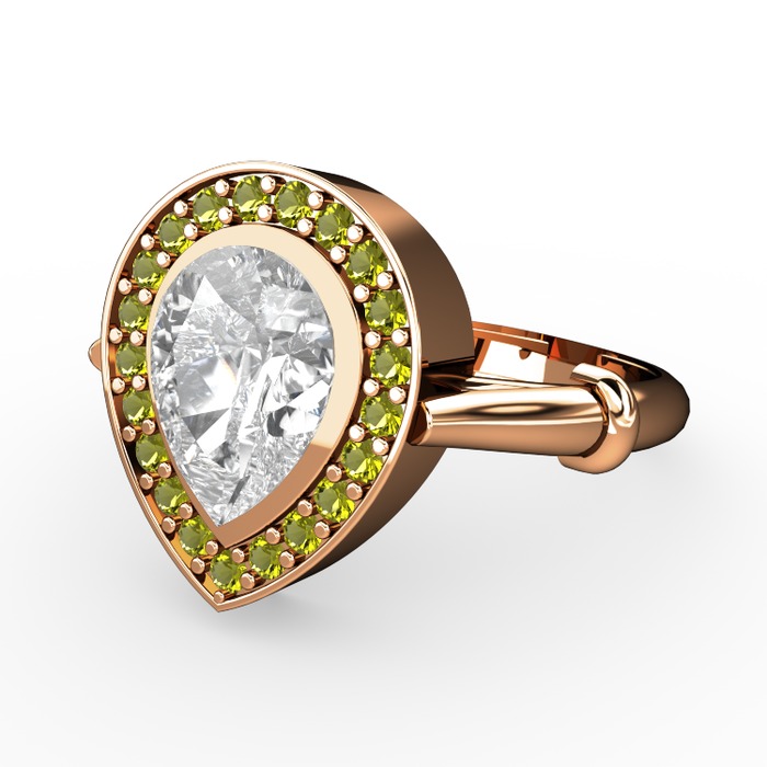 Beyaz zirkon ve peridot 8 ayar rose altın yüzük