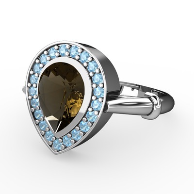 Dumanlı kuvars ve akuamarin 18 ayar beyaz altın yüzük