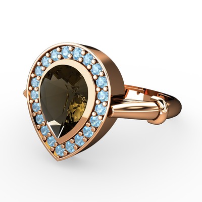 Dumanlı kuvars ve akuamarin 18 ayar rose altın yüzük