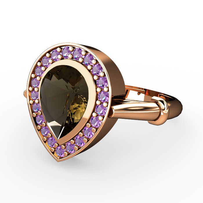 Dumanlı kuvars ve ametist 18 ayar rose altın yüzük