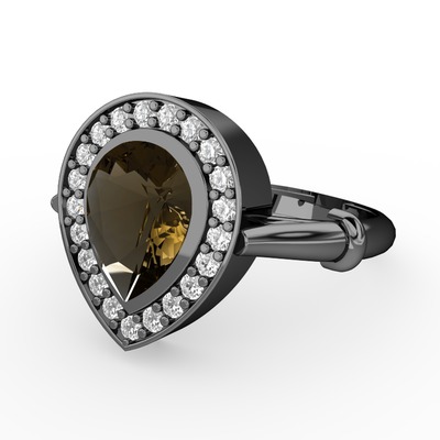 Dumanlı kuvars ve beyaz zirkon 925 ayar siyah rodyum kaplama gümüş yüzük