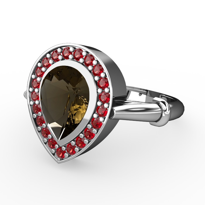 Dumanlı kuvars ve garnet 18 ayar beyaz altın yüzük
