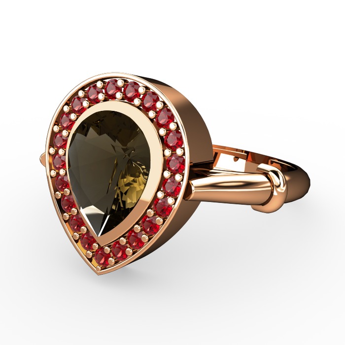Dumanlı kuvars ve garnet 18 ayar rose altın yüzük