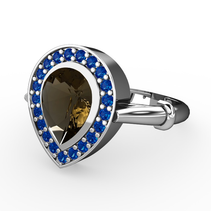 Dumanlı kuvars ve lab safir 8 ayar beyaz altın yüzük